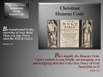 Believers are commanded to “Grow in the Grace and Knowledge of our Lord Jesus Christ.” We can have the Mind of Christ in us. The virtues, standards and power that sustained Christ on earth can become part of our very own Honour Code