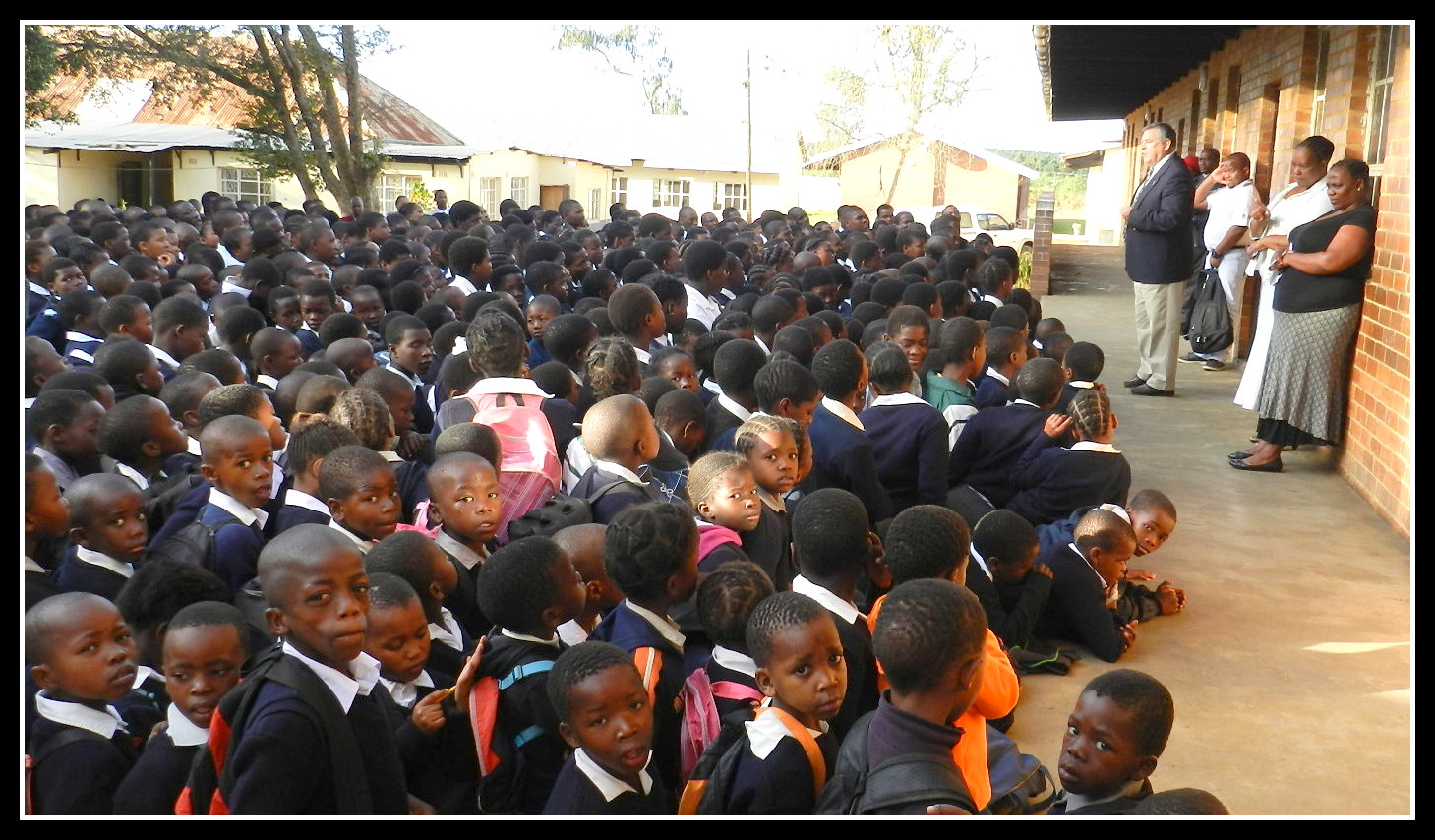 Tom with 1,100 Zulu school children at morning assembly